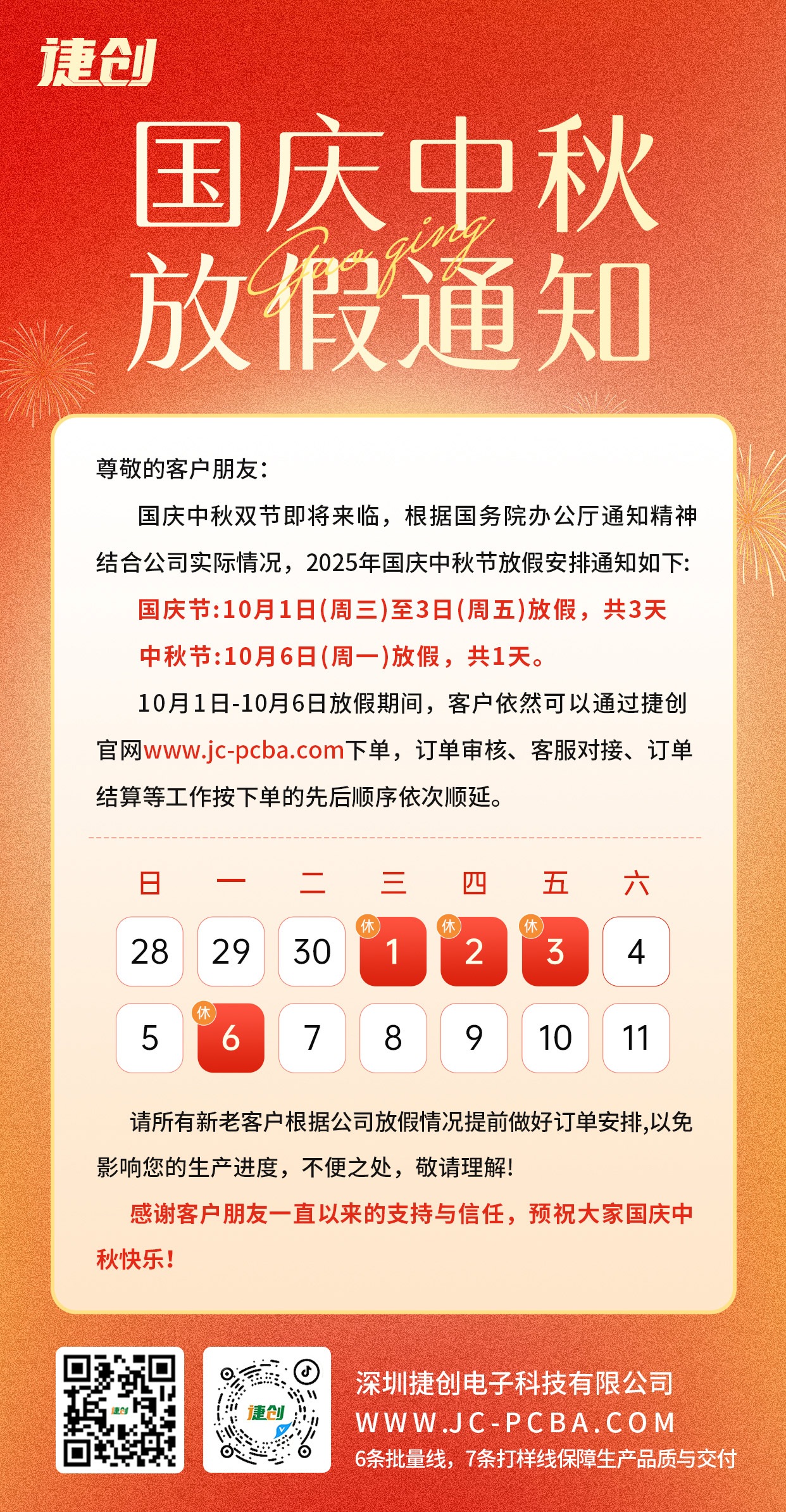 2025年国庆中秋放假通知 | 捷创电子